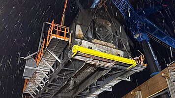 At a height of around 25 metres, the Sutco team is working around the clock to reduce the plant's downtime to around 16 days. Despite adverse conditions with snow, wind, rain and ice on the steel structure, the repair work is being carried out at full speed.