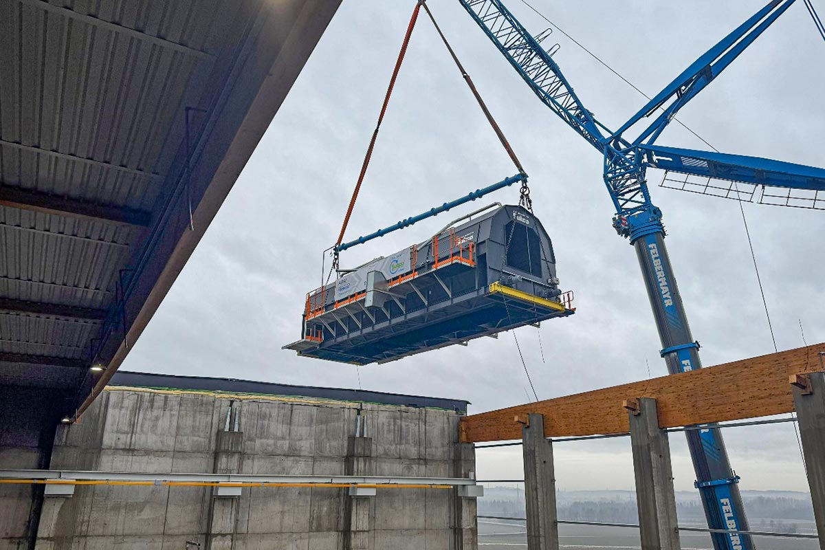 Following a fire, two trommel screens had to be replaced at the LVP sorting plant in Ennshafen, Austria, which is operated by TRIPLAST – ARA, BERNEGGER, DER GRÜNE PUNKT.